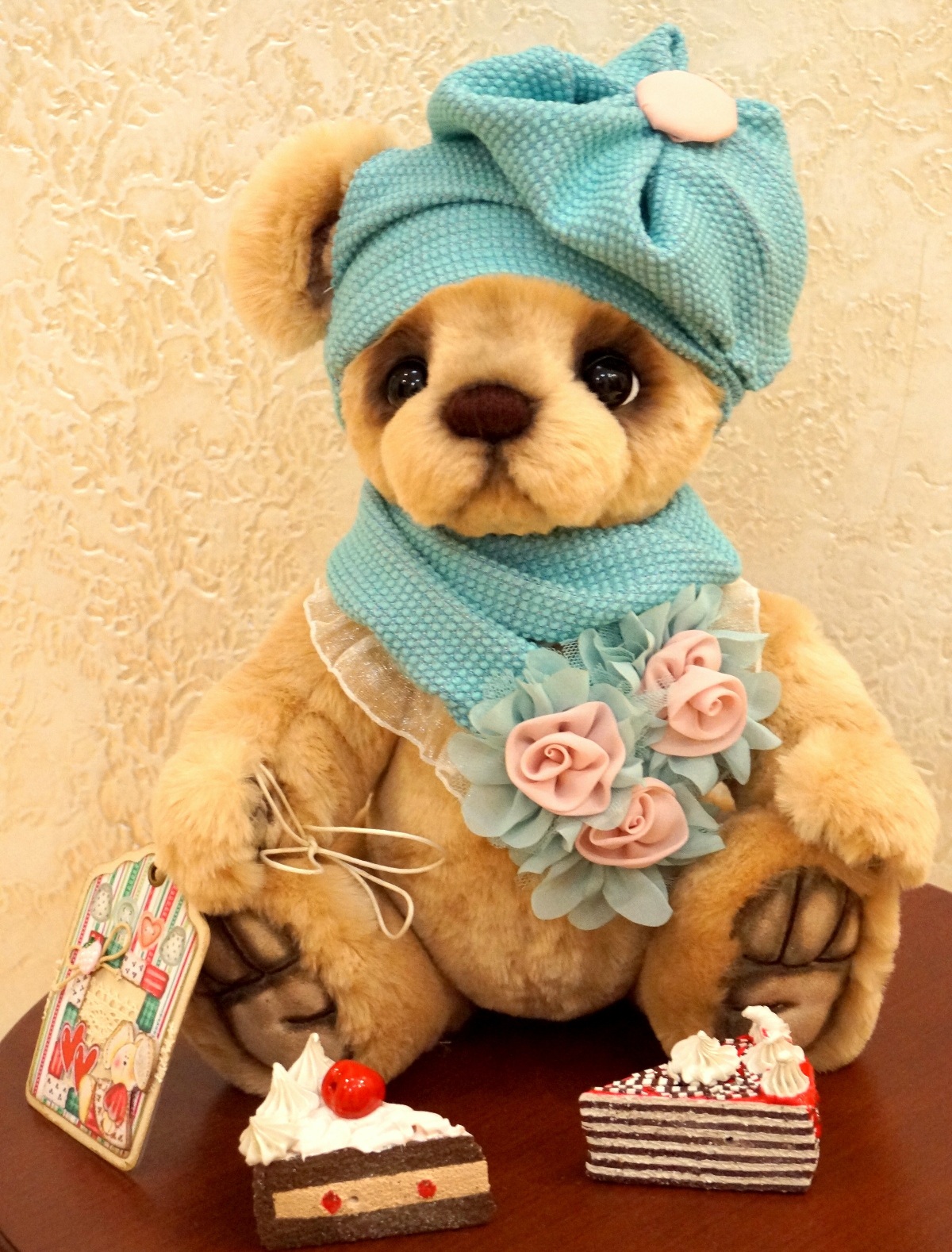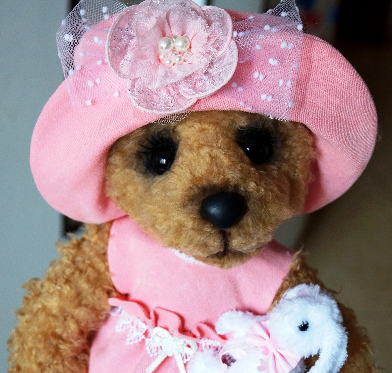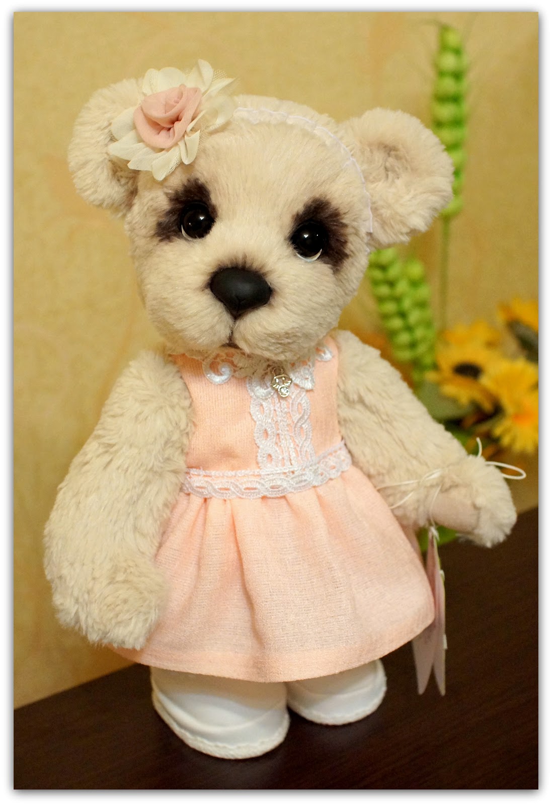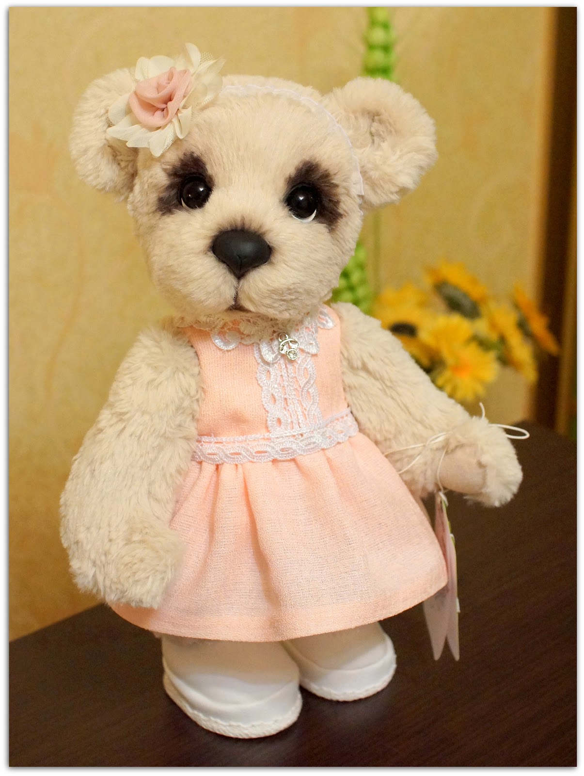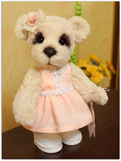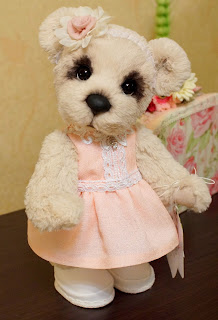 Я вновь со своим новым медведиком... Ася была сшита на заказ... долго думала и выбирала во что ее одеть :)))Ася вредничала...никак не хотела одевать длинное платье... поэтому, пришлось платье укорачивать....Цвет платья, мы тоже неоднократно меняли...... остановились на нежно- розовом..:))))Асе понравился...и она перестала привередничать:)))