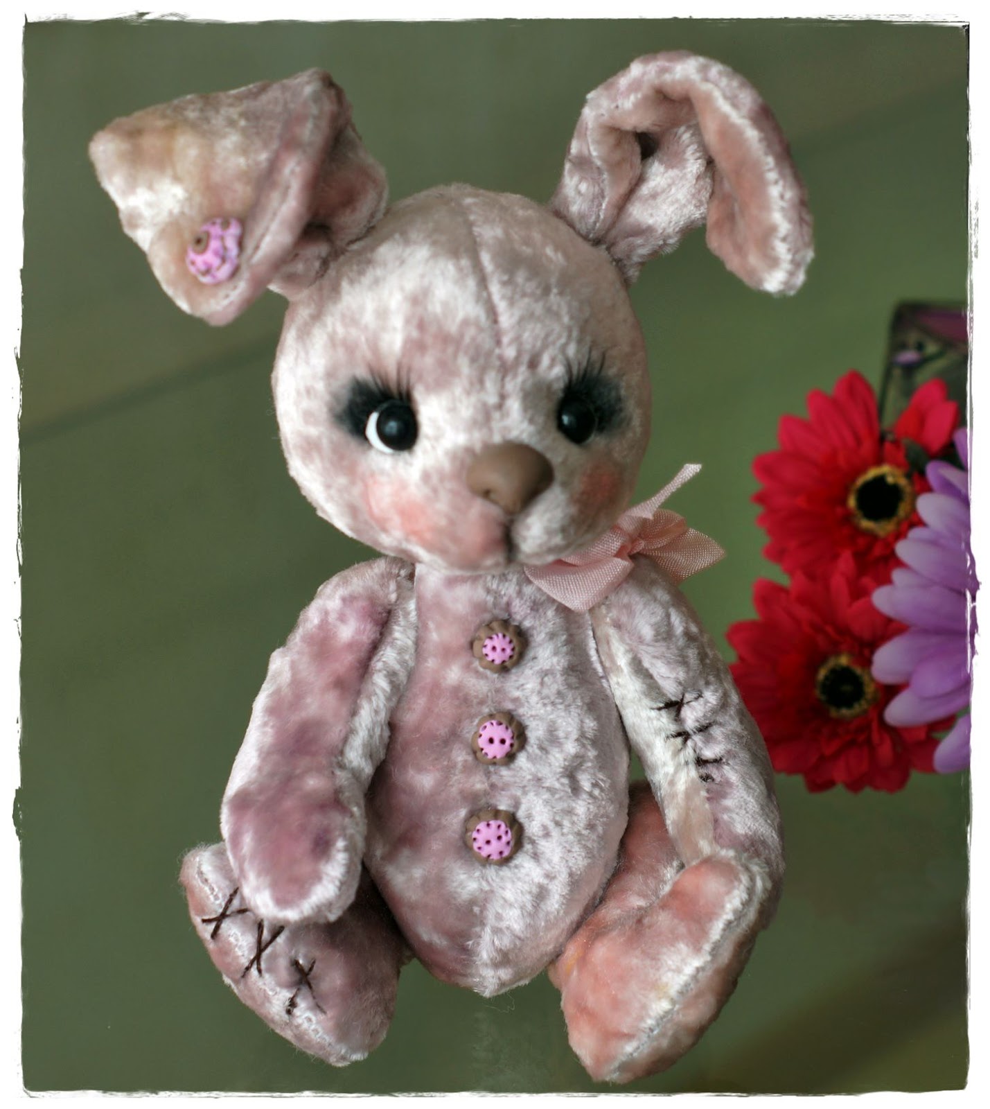 Меня в последнее время тянет на розовое и ничего не могу с собой поделать:)))))) Нашла , остатки плюшика, который покупала давным - давно... и вот! Родилась Nino..... маленькая, застенчивая заюшка.... :) Она с легкостью помещается в руку, и так уютно её держать, что даже не хочется отпускать:))) Я очень трепетно отношусь к своим зайкам- мишкам....не всегда бываю довольна , но почему-то всех их очень-очень люблю...:)))))