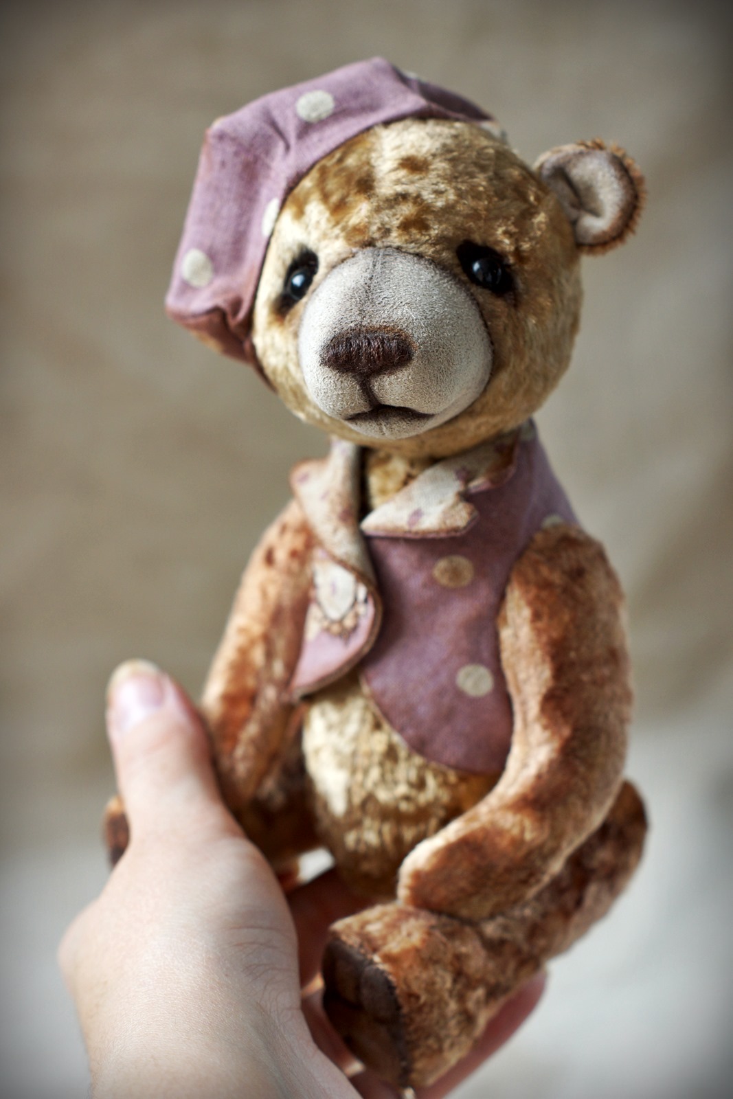 Так получилось, что не отпускал меня мишка, которого я когда-то реставрировала для Натальи... Поселился он у меня в душе...Те эмоции, трепет в душе, когда держишь такую маленькую частичку чей-то истории захотелось передать в своем мишке... сделав старого доброго друга, который стал бы маленьким ангелом хранителем всех Ваших тайн...
