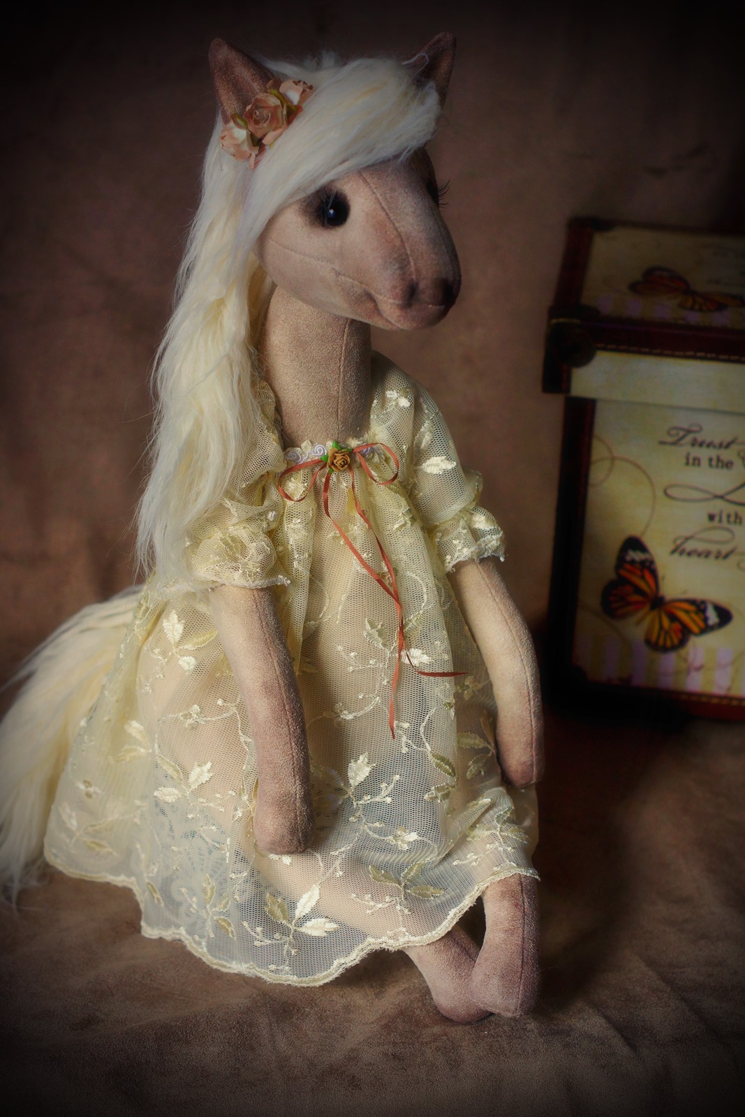 Лошадка Алинушка..... долго я вынашивала идею сшить символ года:))) и вот...та-дам!!!! Работа была буквально на одном дыхании... Хотелось , чтобы девочка получилась и нежной и одухотворенной... и немного загадочной...Алинка, воплотила в себе все мои желания:)))) Родилась, со своим характером и с доброй душой..Я осталась довольна этой милой красавицей:)