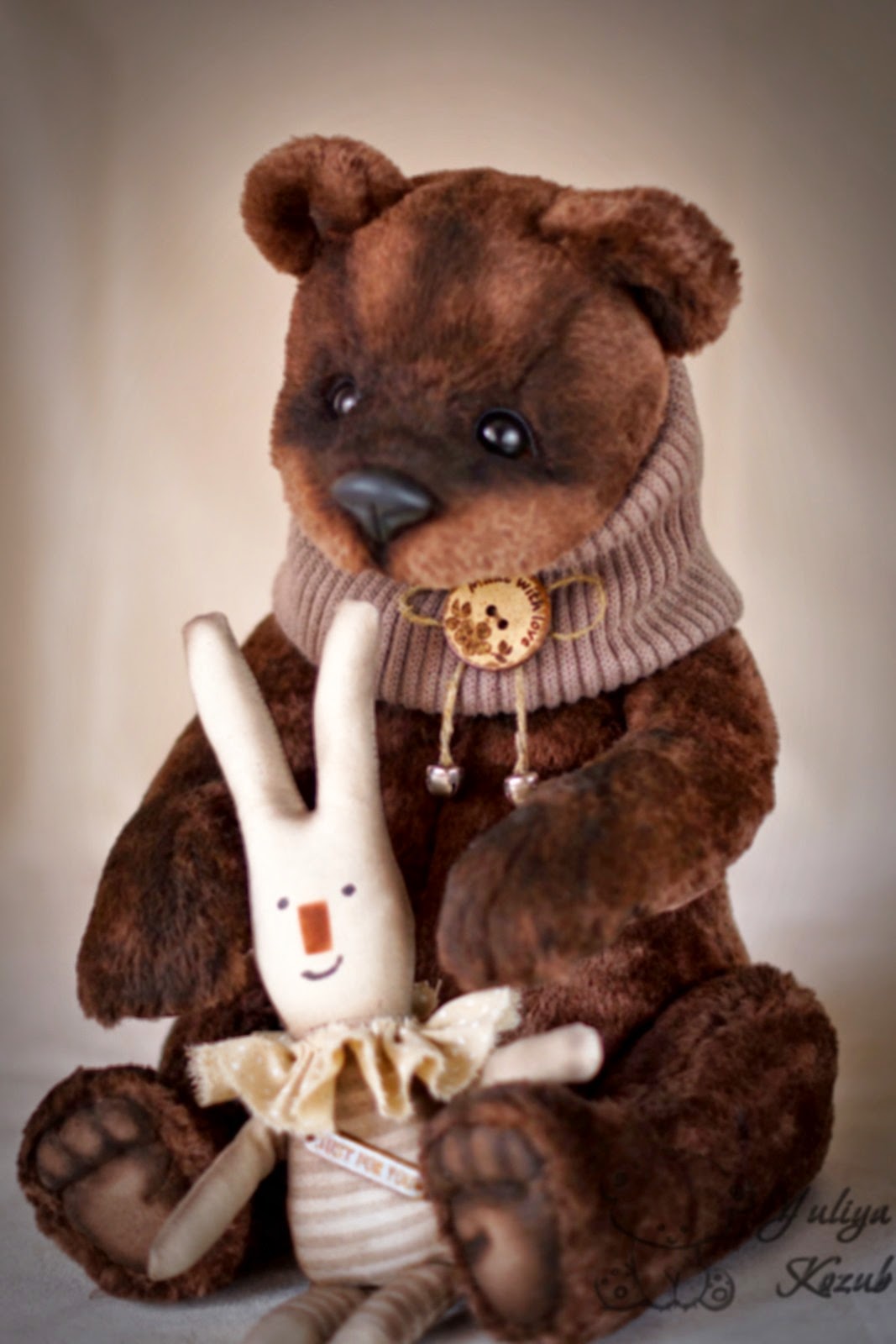 Этот мишка, долго шился.... ждал своего часа... То мы болели с дитем, то как-то было не до шитья , вечные проблемы, суета ... В общем.... пришло время ....дождался :)...родился... А еще и друга попросил.... такого неказистого кролика ... немного смешного и задорного :)